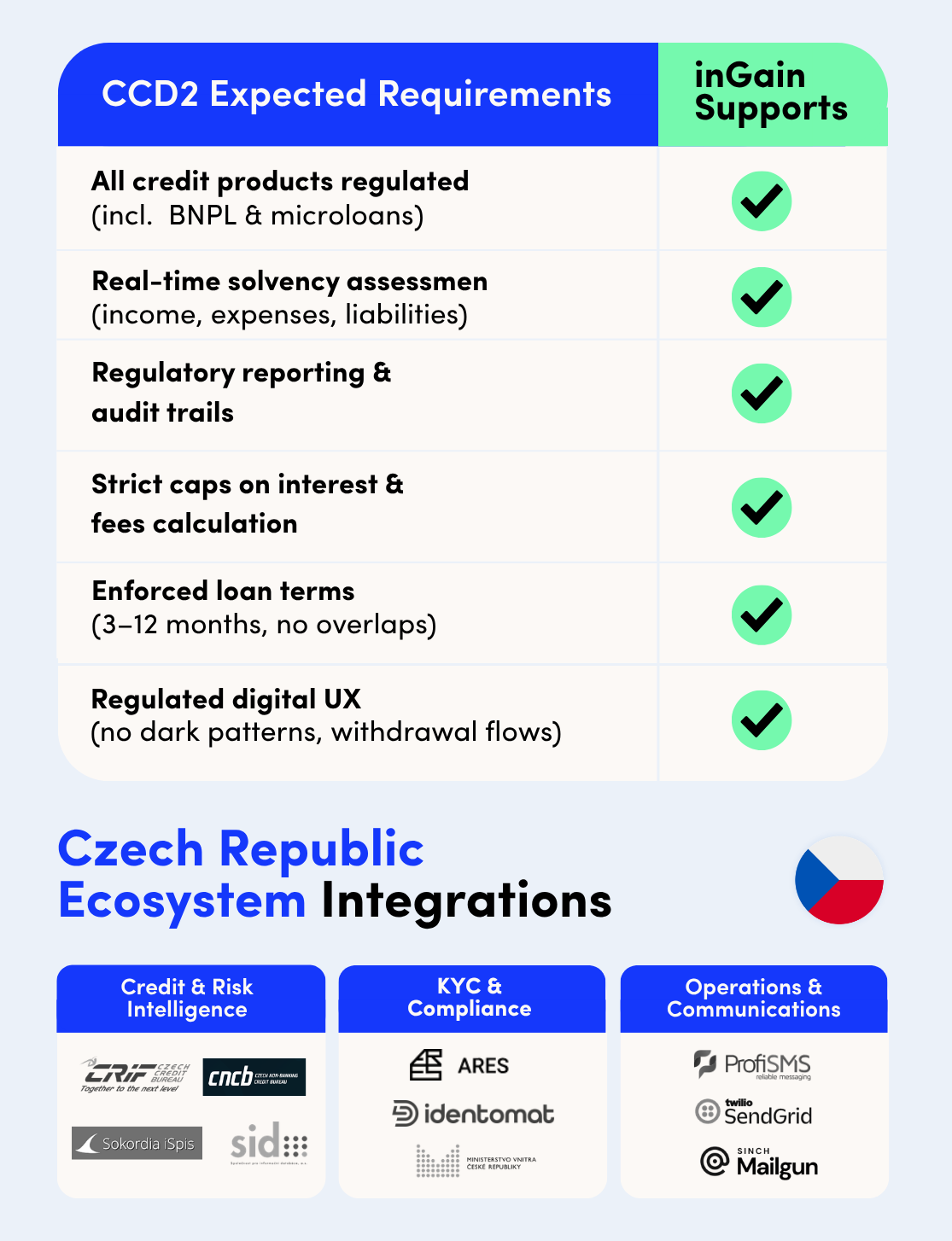 inGain is an end-to-end, no-code platform to launch and run lending operations — from origination and credit scoring to servicing and lifecycle automation. Powered by 90+ integrations, including a local infrastructure for Czech Republic proven with long-term local clients.
